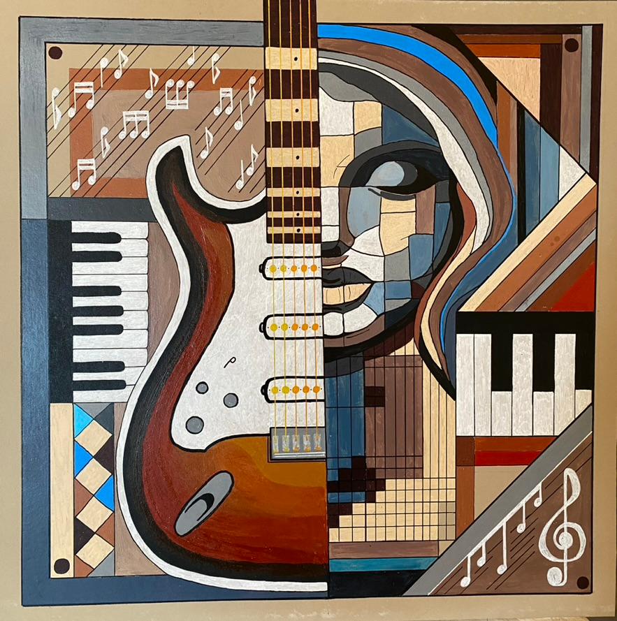 2025. Аcrylic, mixed media, acrylic marker, designer cardboard ARTCARE 40.5x40.5 cm In this painting, music flows through lines, squares, keys, and circles until they find their rhythm. The instruments are silent on their own, but they come alive when a human presence appears - an eye, a glance that gives them life. Music always needs a guide. An instrument cannot speak without the musician. The gaze in the painting is that guide. Through this presence we perceive not just notes, but the inner music of the author. The work combines cubism and contemporary expression, created with acrylic on cardboard. It is both geometric and lyrical: sharp edges softened by emotion, abstract forms transformed into harmony. More than a still life of instruments, it is a portrait of music itself - alive, breathing, waiting for the viewer to hear it. Unique and original, this composition becomes the centerpiece of any interior, resonating with those who seek art filled with both rhythm and soul.